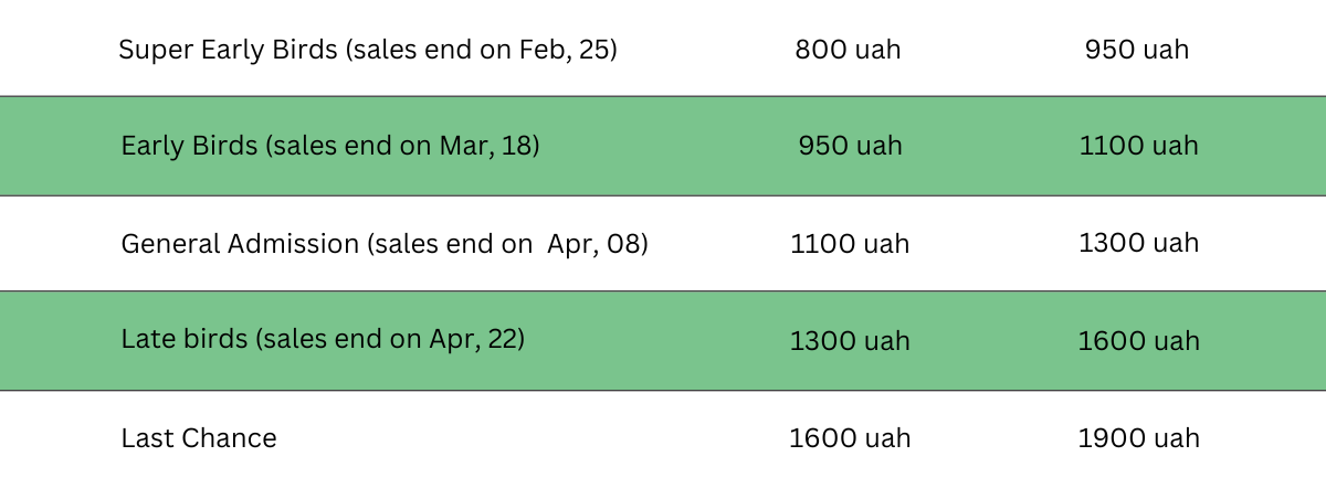 Super Early Birds (sales end on Feb, 25)