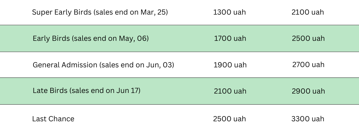 Super Early Birds (sales end on Mar, 25)